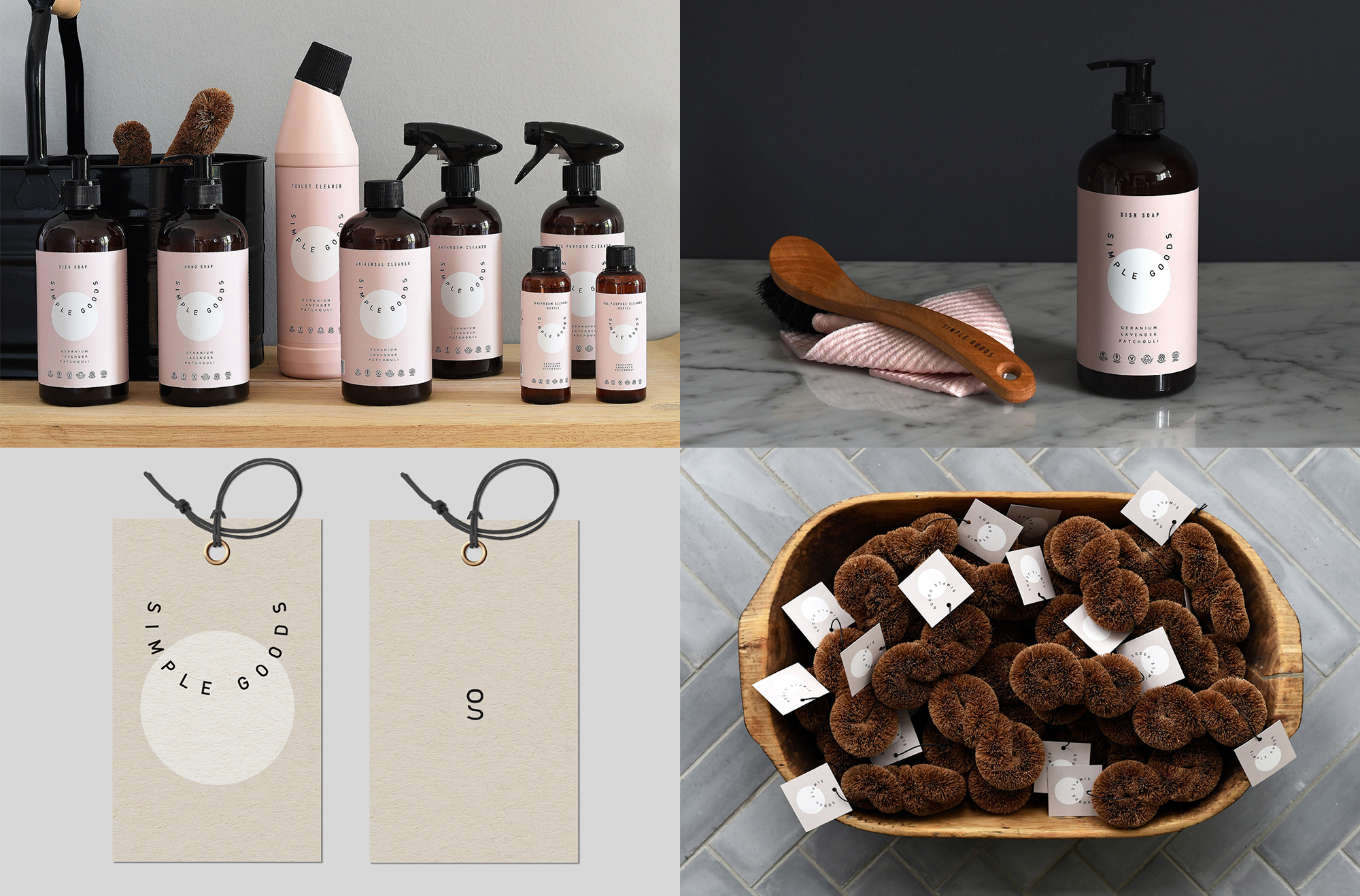 簡單產(chǎn)品是一個新的品牌在丹麥無毒清潔產(chǎn)品由天然和植物成分。這個標(biāo)識由洛杉磯的Kati Forner設(shè)計公司設(shè)計,它用一個簡單而漂亮的標(biāo)志來紀(jì)念這個名字,它把名字包裹在一個隱含的圓圈里,重疊一個非隱含的圓圈,形成一個漂亮、干凈的組合,在不同產(chǎn)品的粉色和灰色背景上看起來都很棒。每樣?xùn)|西都有一種干凈而溫暖的美感,你最后可能只為了包裝而購買這種產(chǎn)品——就像丹麥的方法一樣。不過,我最喜歡的是帶有標(biāo)簽的棕色矮樹叢,就像可愛的小豪豬,有漂亮的設(shè)計。看到完整的項(xiàng)目